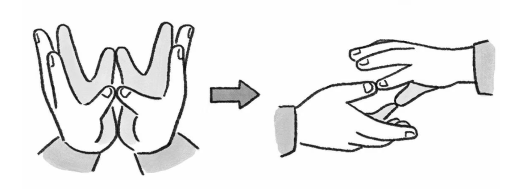 Ngay cả khi bạn có thể tạo thành hình chim bồ câu, lòng bàn tay của bạn thường hướng ra ngoài.