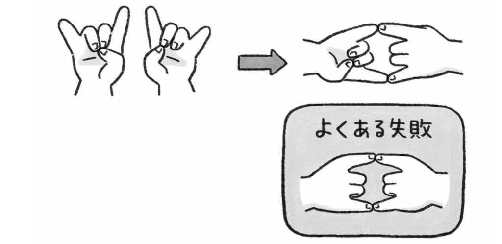 ② Giữ tay cáo, nối ngón trỏ của bàn tay trái và ngón út của bàn tay phải, ngón út của bàn tay trái và ngón trỏ của bàn tay phải.