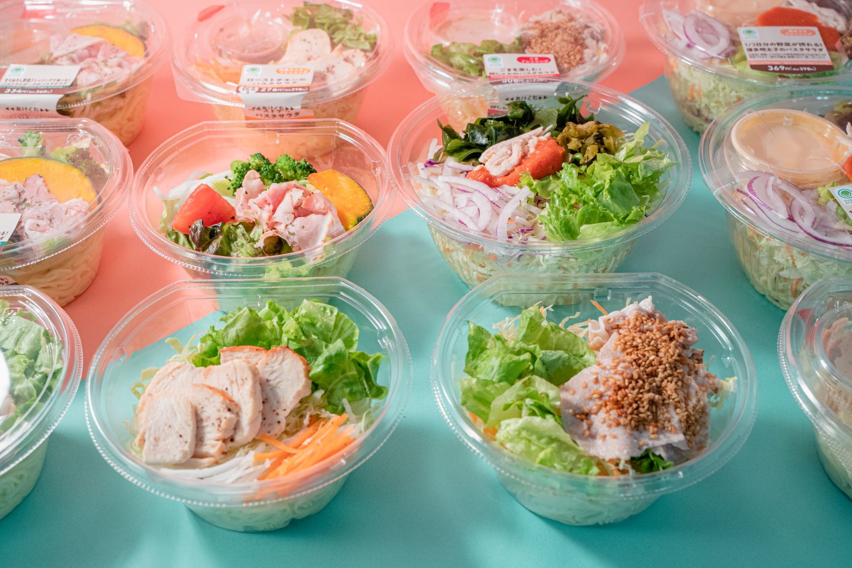 Ngày nay, tất cả các loại salad đều có sẵn tại các cửa hàng tiện lợi, bao gồm “salad rau xanh”, “xà lách trộn”, “salad Caesar”, “salad khoai tây” và “salad rong biển”.
